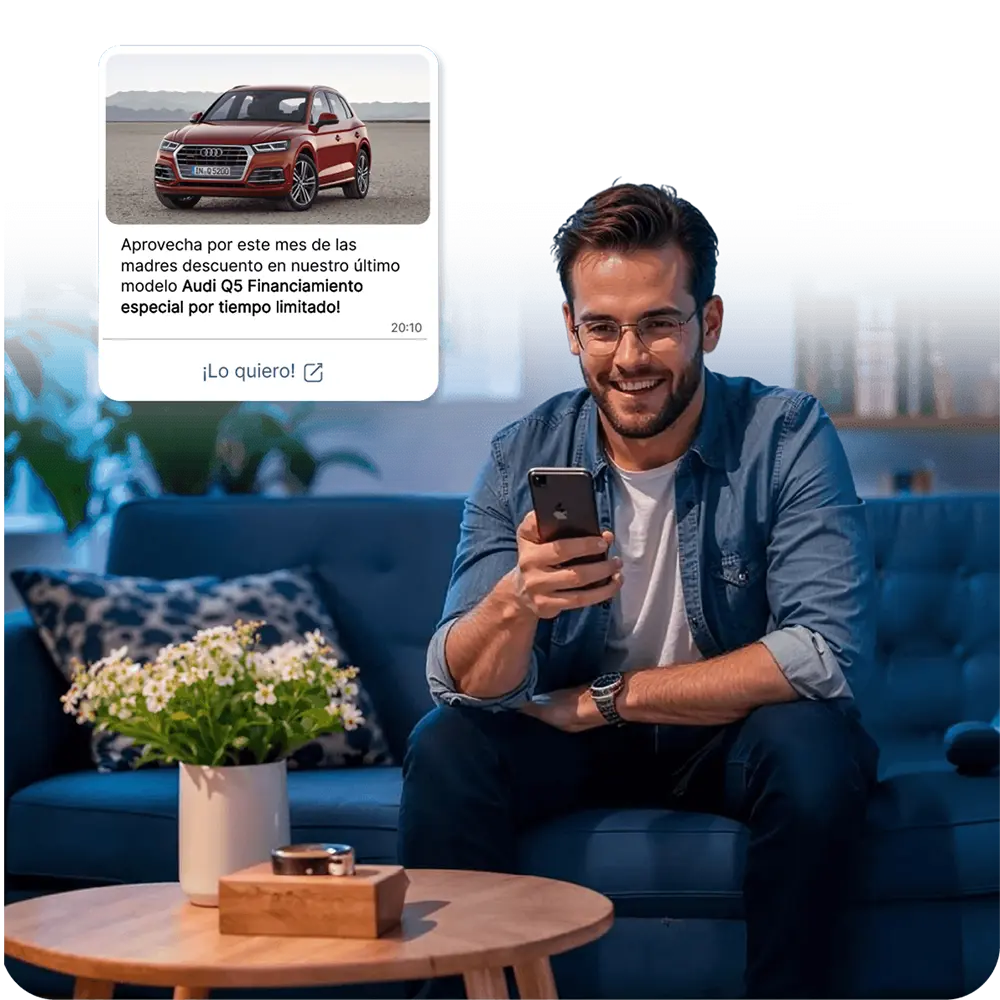 Genera más prospectos calificados vía WhatsApp en automático, con conversaciones personalizadas que impulsan las ventas de tu concesionario