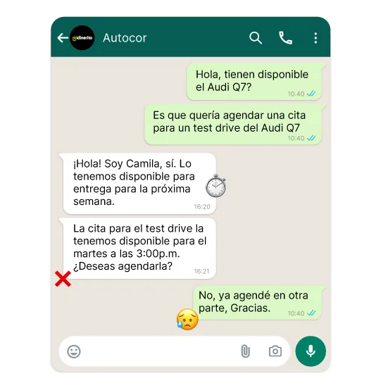 Autocor implementó un AI Agent en WhatsApp totalmente integrado con su inventario y CRM, capaz de responder en segundos, enviar cotizaciones y calificar oportunidades en tiempo real.