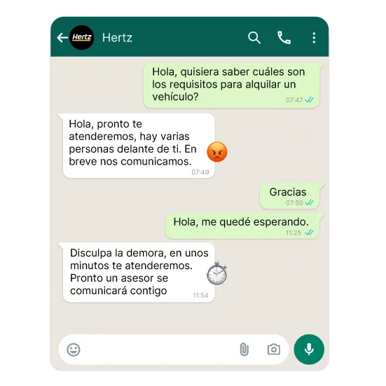 El equipo comercial de Hertz recibía cientos de mensajes en WhatsApp sin filtros ni trazabilidad. El canal crecía, pero la productividad caía y se perdían oportunidades reales de venta.