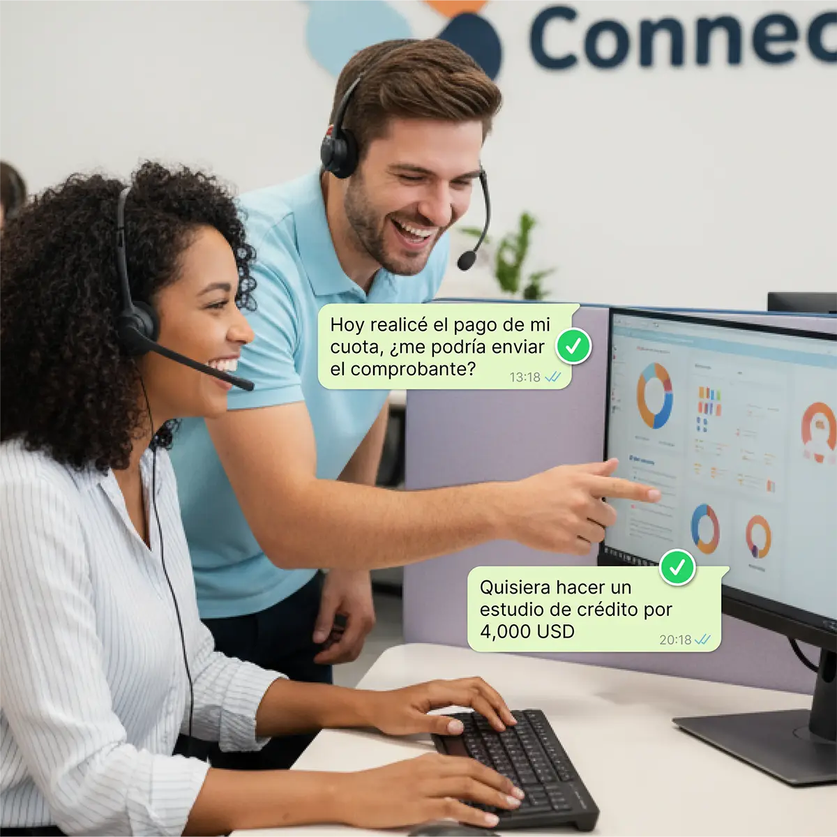 Mide el rendimiento de cada asesor: niveles de servicio, tiempos de respuesta y tasa de conversión. Mejora tu operación con datos reales.